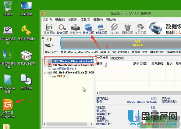 打开桌面上的分区工具,选择固态硬盘,点击“快速分区”对固态硬盘进行分区