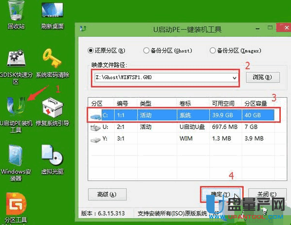 接着打开u启动pe装机工具,选择下载好的系统,选择系统安装分区,点击“确定”安装。