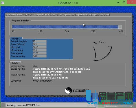之后就和普通的安装系统一样,只要耐心等待ghost释放完毕,重启电脑自动安装即可