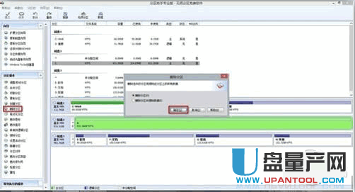 左侧菜单列表选择删除分区,确定。