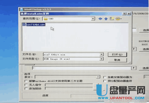 然后我们找到之前下载复制到U盘里的Win7 64Bit .Wim后缀的镜像文件。