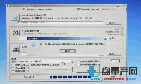 完成后自动重启,重启时选择新装WIN7系统进入