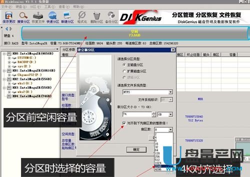 其操作是分区时选择“对齐到下列扇区的整数倍”扇区数选择8或者以上,建议选择2048,这就是Win7分区使用的值,实际对齐大小就是1024K。