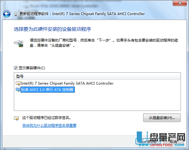E.再点击“让我从计算机上的可用驱动程序列表中选取,手动选择 标准SATA AHCI 控制器驱动就是微软驱动了,然后点下一步到安装完成。
