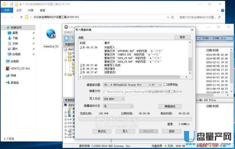 1、用UltraISO软件,以系统管理员方式启动,打开hdat2cd_53.ISO文件,写入硬盘映像