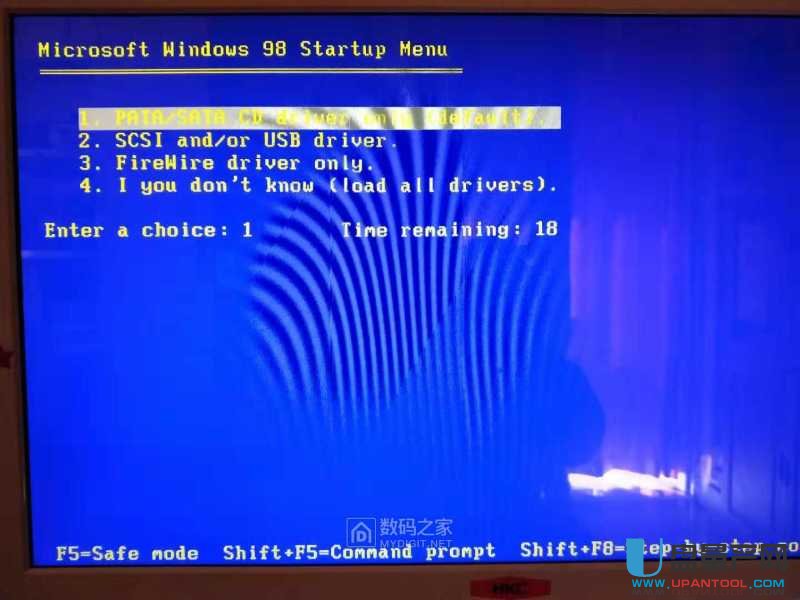 2、写入成功后,选U盘引导,在启动菜单中选择第一项: