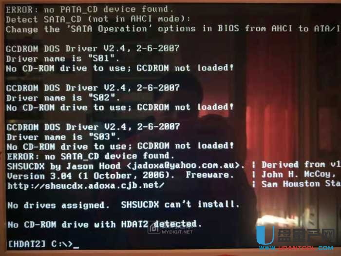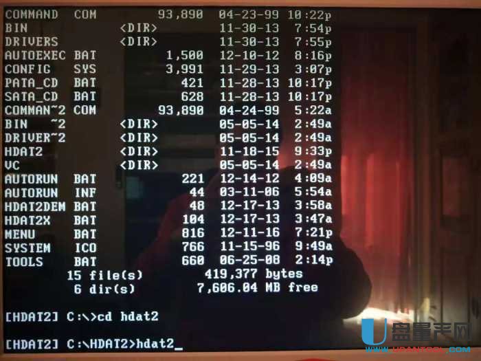 3、启动好以后,进入DOS系统下,输入cd hdat2