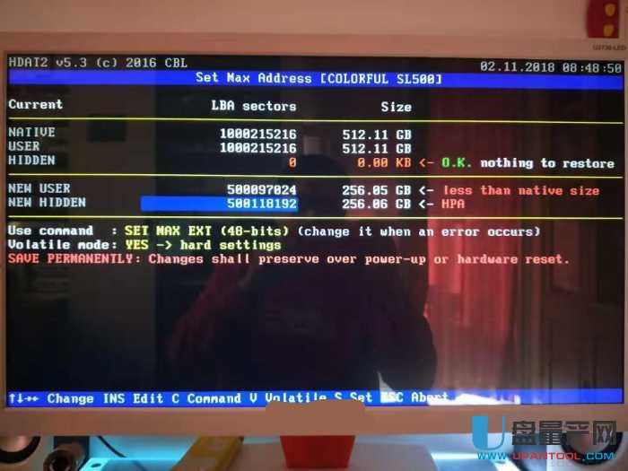 10、按照LBA表输入256G对应的LBA地址,好长的数值