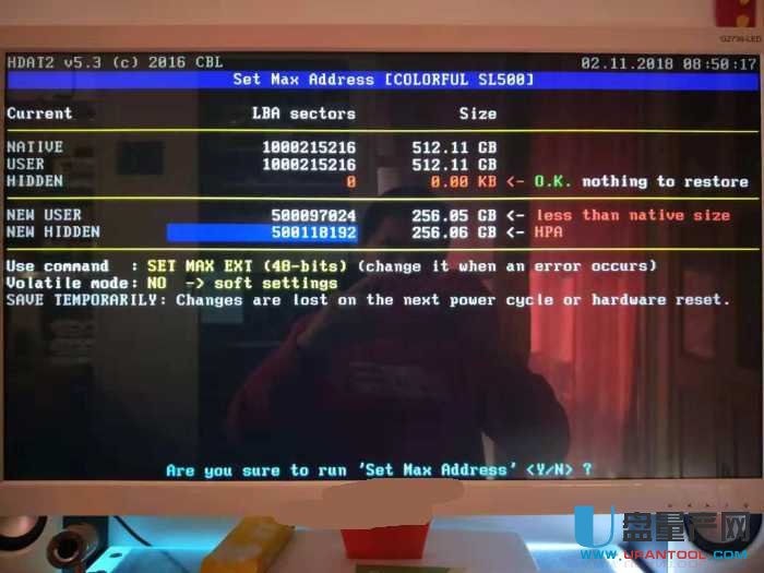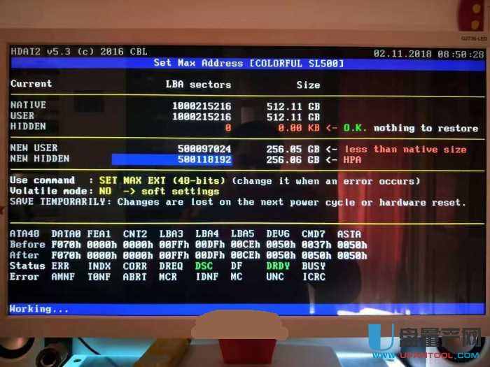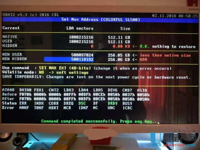 16、再按ESC键,返回到软件主界面,可以看到我的SL500的容量,已经变为256.05G了,说明操作成功了!