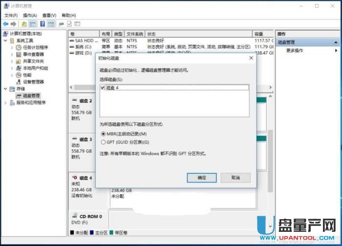 17、再次进Win系统的时候,磁盘管理器这里会提示初始化磁盘,正常的分区格式化就可以了