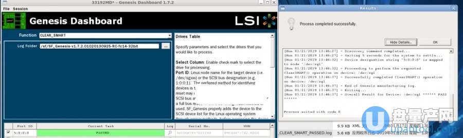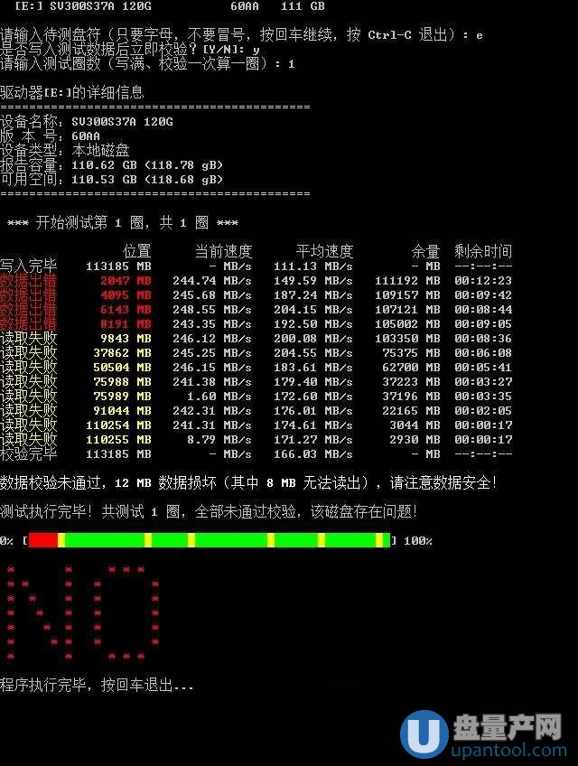 开卡后还需要用urwtest工具多跑几次圈,也就是测试容量,让固件自动识别并屏蔽坏块,这里是刚做实验稍减小用户空间后跑第一次时的状态: