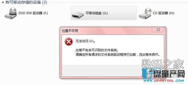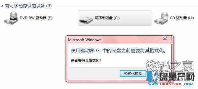 可是前两天插入电脑后弹出下面的对话框: 瞬间崩溃了,由于闪迪的U盘没有量产工具,所以量产的方法也没办法使用了。