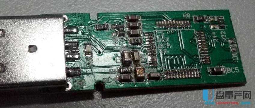 之前没怎么修过需要换主控的u盘,这次同事拿了一个烧毁的4g的u盘过来,东芝的正品盘,群联2251-61主控,查询就是群联up21主控,在库存里找了找,找到一个up21的空板,那就试试换主控吧~