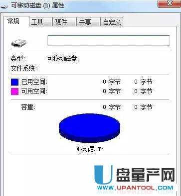 2、这时候你用鼠标点击U盘右键-属性,看看U盘的空间是不是显示为0。
