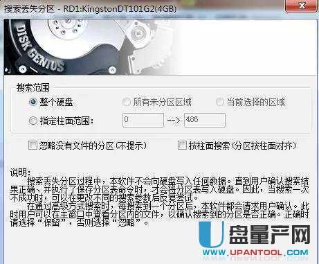 8、这时候软件就会扫描你的U盘不一会就会出现U盘分区了,这时候搜索完毕如下图