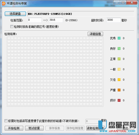 然后直接点击开始检测,这个需要的时间比较长,耐心等待,扫描完成就会给到坏道有哪些,然后点击尝试修复,等待修复成功就解决了。