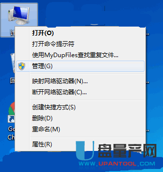 点击桌面上的计算机,鼠标右键点击管理,如下图