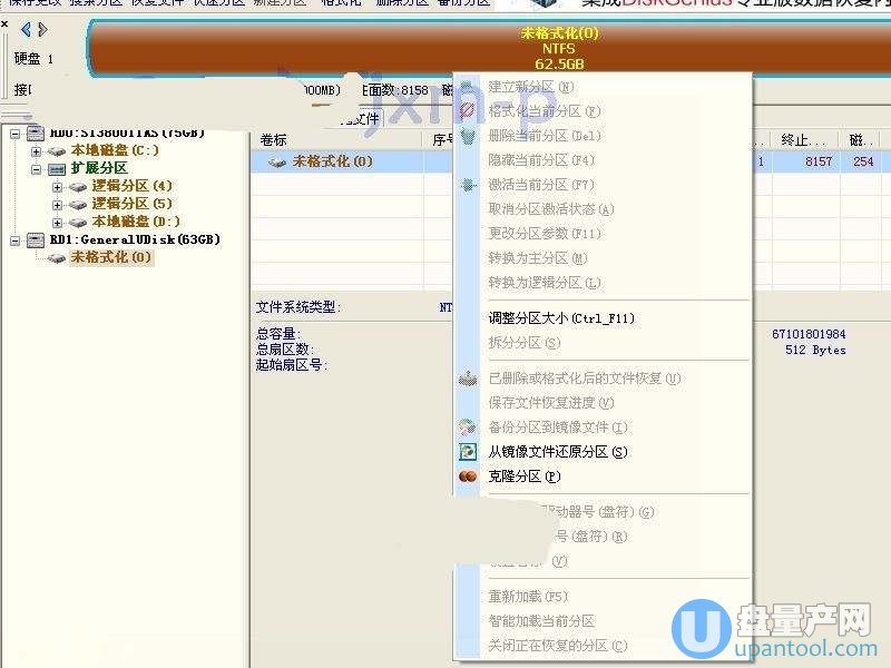 我们用diskgenius来对U盘进行分区,只保留之前的16G容量这样的方法,结果根本无法分区,如下图。怎么办呢?下面教大家另一种方法