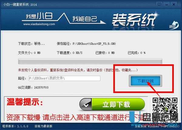 温馨提示:如果软件不能实现下载,一方面排查上述磁盘空间情况,或者点击下方的高速通道进到小白官方的网页下载系统文件到本地的非C盘目录,然后再通过小白软件的一键还原功能进行安装!