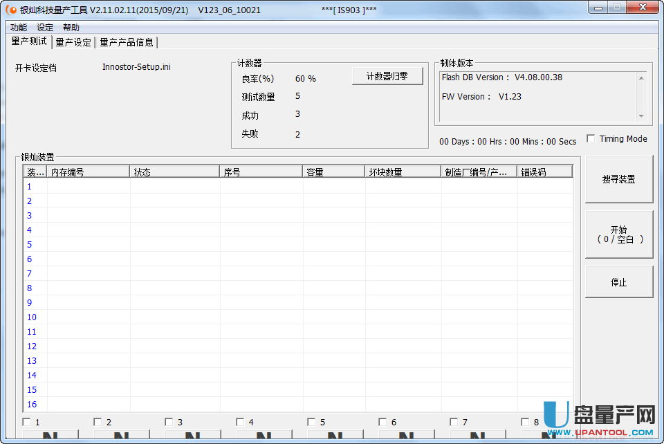 大家都知道银灿IS903 MP Package 2.11.02.11 V123_06_1510021属于2015年1月的量产工具了,它已经不支持今年的U盘量产,原因是不认识新的闪存,而本版本进行升级后几乎包括了IS903所有能支持的闪存,而且支持扫描后开卡;Flash数据库版本为V4.08.0038。