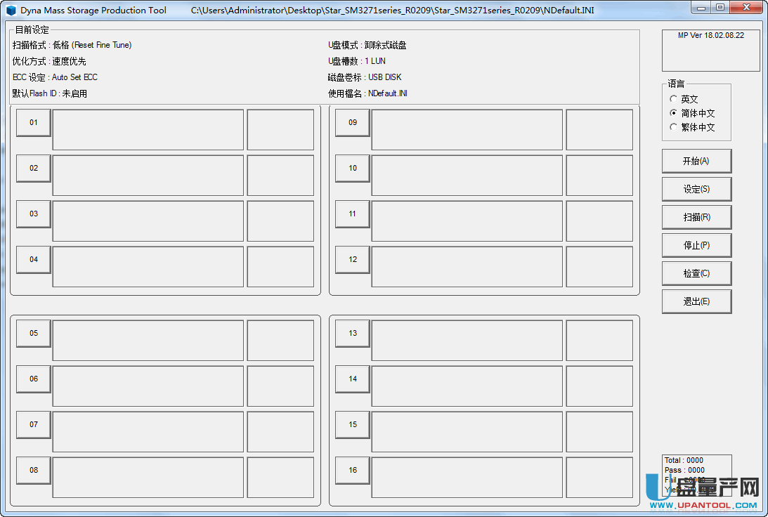 慧荣也有黑片和正片两种量产工具,对于一些比较便宜的U盘,扩容的U盘,或者其他量产工具都无法量产成功的U盘,就需要这款黑片的新量产工具,版本为v18.02.08.22 R0209,适用于SM3259AA、SM3267AC、SM3267AE、SM3268AA、SM3268AB、SM3269AA、SM3270AB、SM3271AB主控的U盘量产使用。