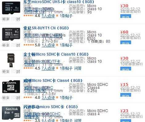 通过以上的了解,我们知道了怎么选择内存卡。那么购买时内存卡的价格有什么需要注意的呢?小编选几款比较热门的内存卡来比较下: