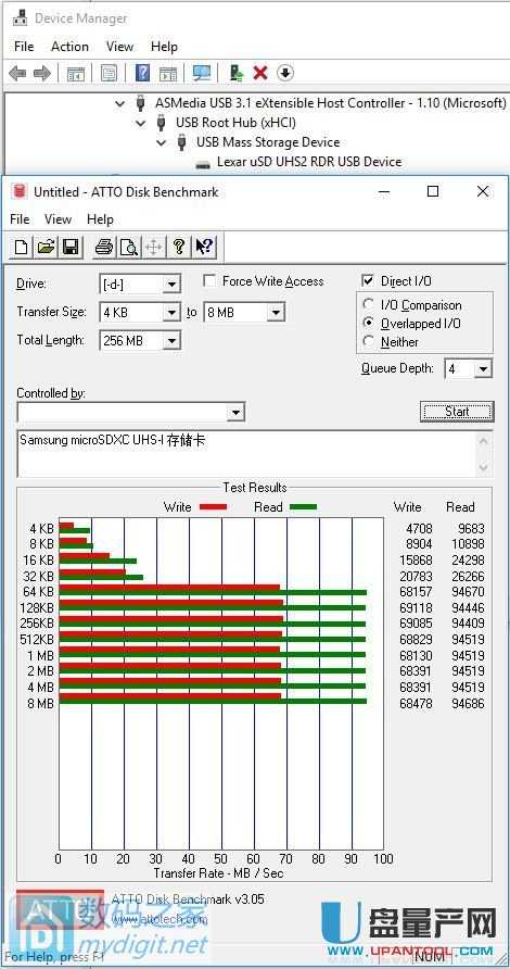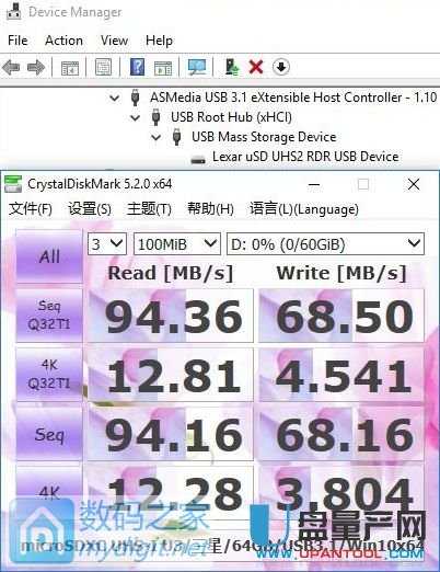 写入68MB/s高于标注的60MB/s,同时读取比标注差了一点,不过我觉得读写速度一样甚至均衡才是最重要的。