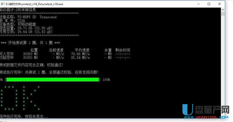 可以看到写入平均速度是78M/S,读取速度是85M/S。