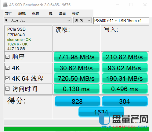 下面开始测试读写速度,使用的软件是AS SSD Benchmark: