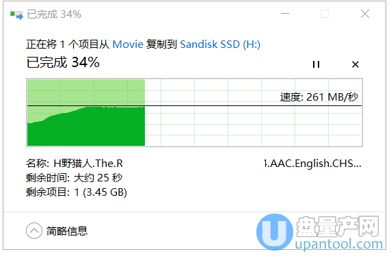 实际拷贝文件的速度,从电脑拷贝文件到ssd里,能到261M/S的写入,当做移动硬盘来说非常好了。