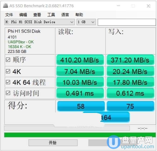 下面再用AS SSD Benchmark测试下速度,和是否4k对齐,是否打开ahci。