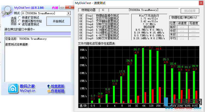 之前我们拆开了这款东芝随闪MIKAWA的U盘,今天我们测试下它的速度怎么样: