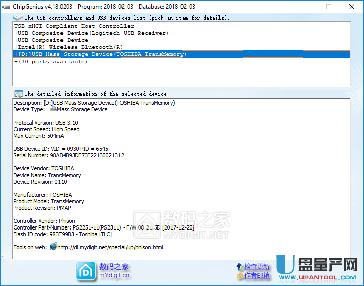 可以看到外包装和产地:菲律宾,U盘的属于正常封装,usb口是隐藏的。首选我们先检测看看U盘的主控和闪存是用的什么。