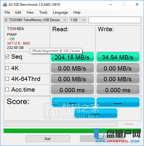可以看到U盘的主控是非常新的版本,而闪存是东芝自己的,按理说质量应该还不错,下面就测试一下速度看看。