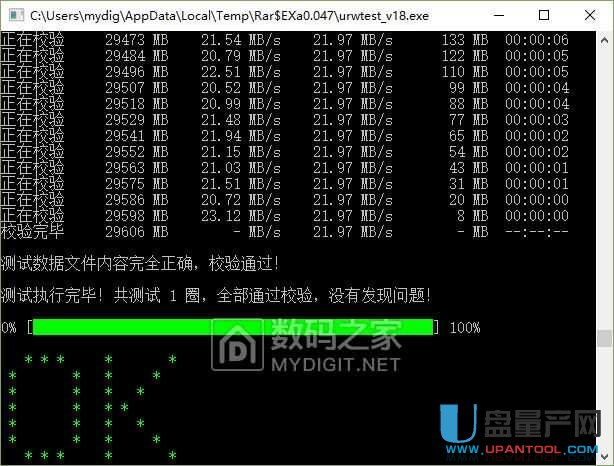 由于是安国的主控,特别容易出现扩容的U盘,下面再测一下是不是扩容的,软件使用urwtest