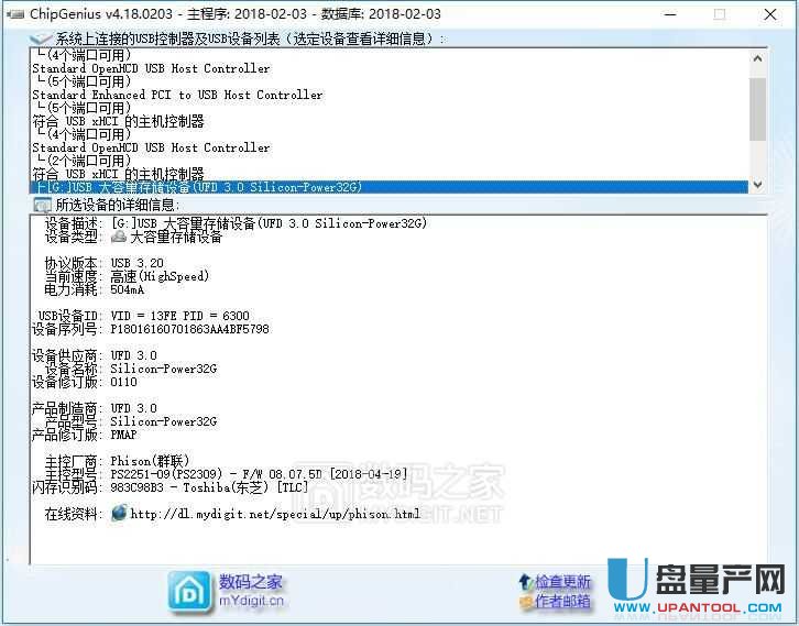 1、先用ChipGenius检测一下U盘采用的主控和闪存分别是什么: