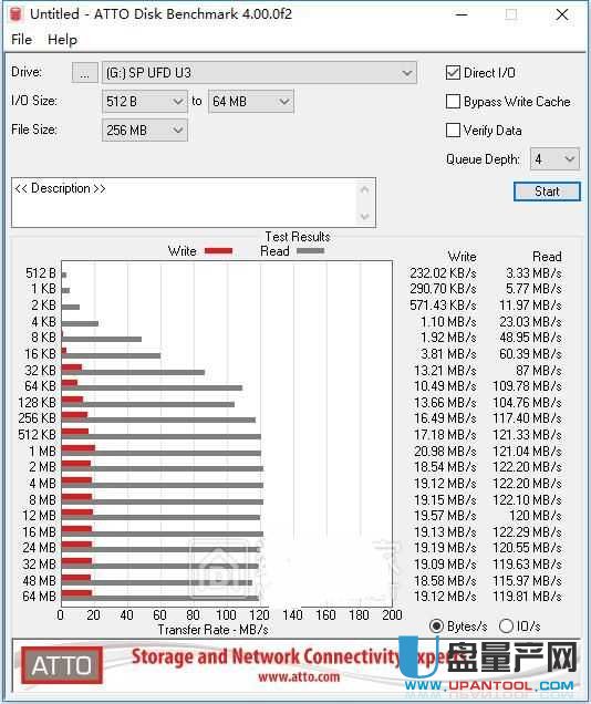 2、用ATTO Disk Benchmark测试一下U盘速度