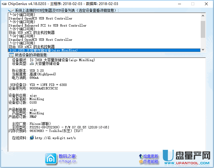 1、按惯例先检测u盘主控,检测软件是ChipGenius,检测结果如下图