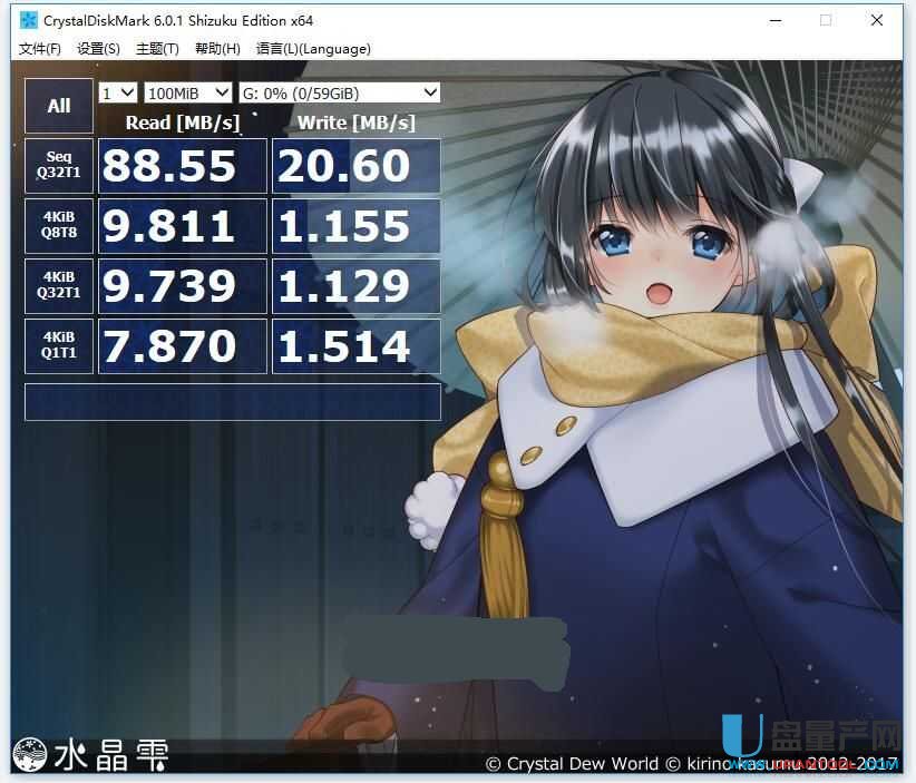 可以看到最大的写入速度是20M/S左右,最大读取是90M/S,读取速度很不错,但写入速度特别一般。