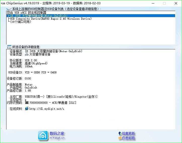 上图可以看到主控采用的是得一,也就是以前的硅格了,此主控一般在比较便宜的U盘上使用,但也算正品U盘常用的,闪存没测出来,slc肯定不是正确的结果,估计是TLC的。