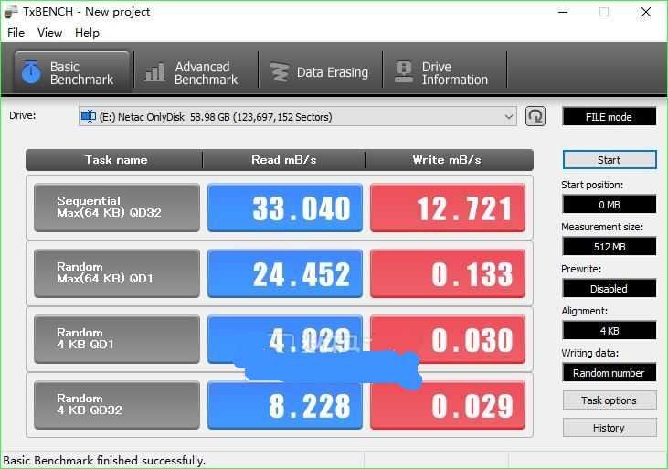 4、为了准确,再次使用TxBENCH软件测试读写速度如下