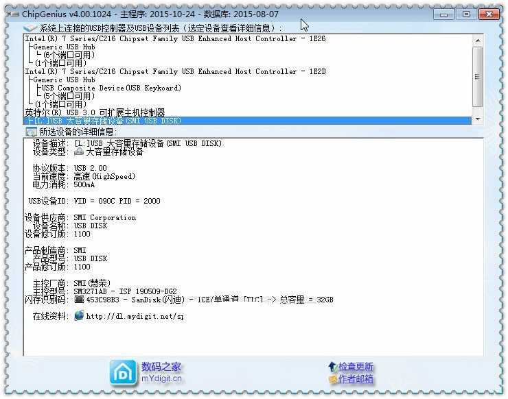 1、首先还是先看U盘主控是什么,可以看到ChipGenius检测结果是慧荣的SM3271AB主控,闪存是闪迪TLC的32G。