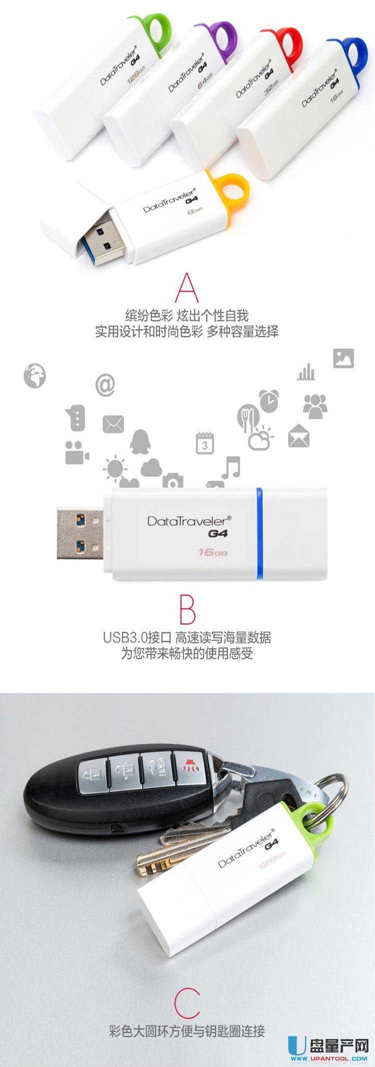 金士顿DTIG4 上市已经有段时间,U盘之家直营店也出售了16G的一段时间用户口碑不错,金士顿DTI G4系列闪存盘更加考究,完全摆脱传统闪存盘方方正正的死板设计,整体棱角分明,线条感更足,给人的第一感觉是简约、时尚、亮眼。加上尾部彩色的大圆环设计,完全可以充当一个精致的装饰品拴在钥匙串或手机链上随身携带,为您额外增添一抹鲜活的色彩。与G3系列一样,升级版的DTI G4具有多种缤纷的色彩,并且不同的颜色代表着不同的容量。包括黄色(8G)、蓝色(16G)、红色(32G)、紫色(64G)、绿色(128G)等,尾部环扣多种颜色不但能够让您快速识别出闪存盘的容量,而且更能秀出炫丽的个性自我。
