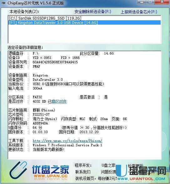 芯片无忧由U盘之家技术团队全力打造,为了方便广大量产朋友而专门开发的工具。它具备检测U盘主控、闪存、VID、PID、SN、电流、分区是否对齐等诸多功能,是量产朋友的必备工具。