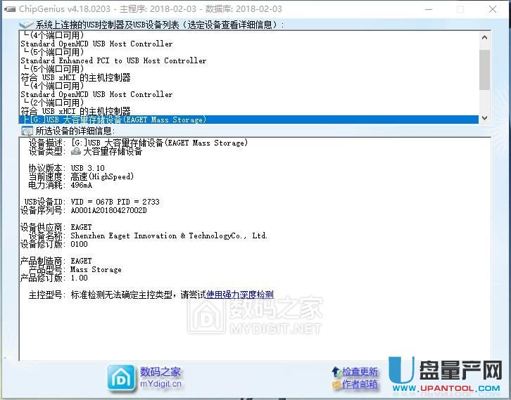 1、首先用ChipGenius测试一下U盘的主控和闪存,结果如下
