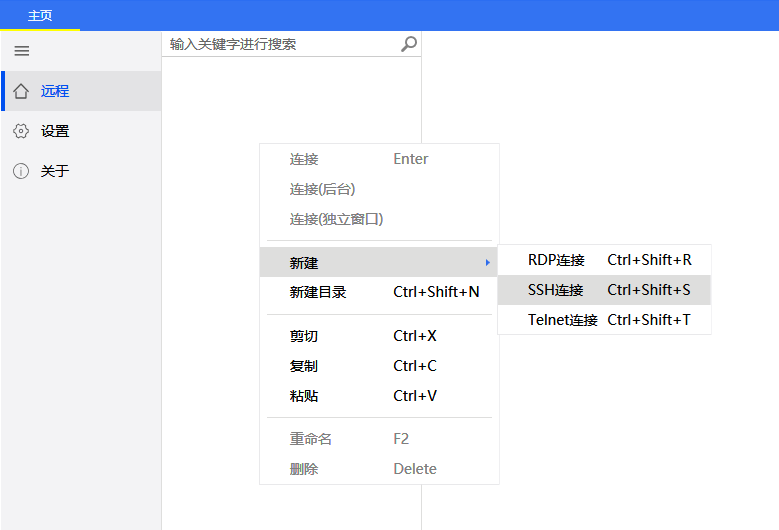 你也可以直接用快捷键CTRL+SHIFT+R或者S或者T来选择RDP连接、SSH连接或者Telnet连接,这样更快速度新建远程连接。