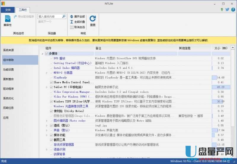 NTLite从名字上就是山寨nLite了,可以说明功能差不多,是无人值守系统安装工具,是Windows配置和最终的自定义工具。您可以修改您现有的 Windows 安装或尚未部署的图像。NTLite 允许您删除你不希望或不需要安装的 Windows 组件。此外可以配置和整合,加快 Windows 部署过程和这一切为下一次设置。方便地集成应用程序安装程序、 脚本、 注册表改动或原始命令。提供一个沉默的开关和自动运行应用程序安装程序后安装。所有重要的警告,挂起的更改和操作。