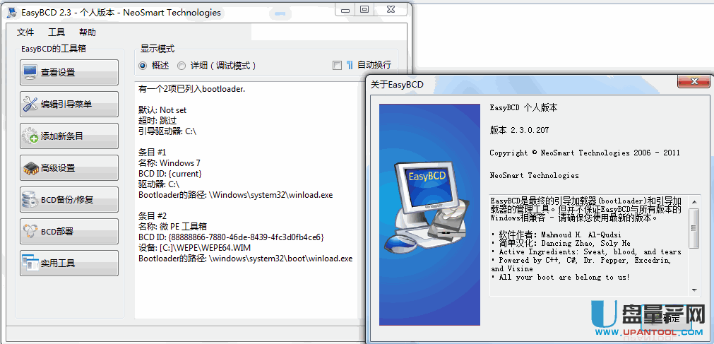 系统为什么会从硬盘里的系统进入完全是因为系统引导在起作用,如果引导文件被损坏了就会导致进不了系统,这种时候还是很崩溃的,这种时候就需要用到这款easybcd软件了,它可以在winpe下进行引导的修复,当然也可以在桌面上使用,这时候系统能进,使用的话一般都是为了多系统启动修复的目的了,在我们装了多个系统共存的时候就需要用到easybcd来达到先启动哪一个系统,哪一个系统启动失效了也可以用它来修复,它集bcd引导的编辑修复与新增的功能,而这里分享给大家的是最新的easybcd版本且还是汉化中文版,直接安装后就是默认的中文界面。