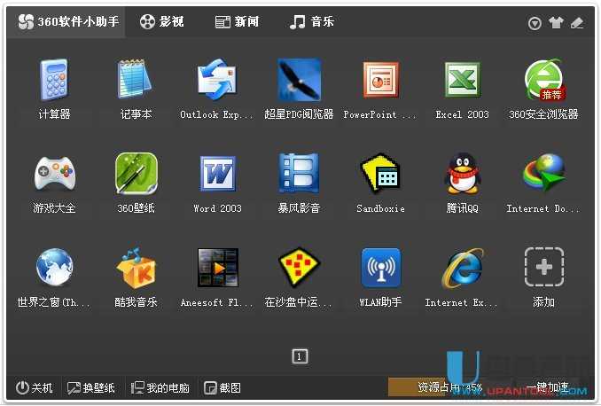 这个是从360软件管家中提取出来的,不安装360也能够正常使用,双击SoftMgrLite.exe后,会自动在屏幕左下角的“开始”按钮的右侧建立 360软件小助手图标,直接点击它就能够使用了。
