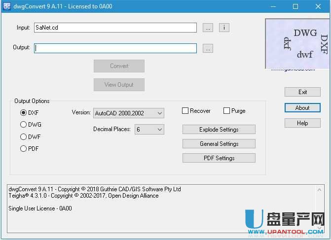 如果想要把cad的格式转换为其他的的,这款dwgConvert就能满足你所有的要求。 他可以实现在DXF和DWG文件之间以及在DXF和DWG版本之间转换。所有的DXF DWG版本都支持到AutoCAD 2018。